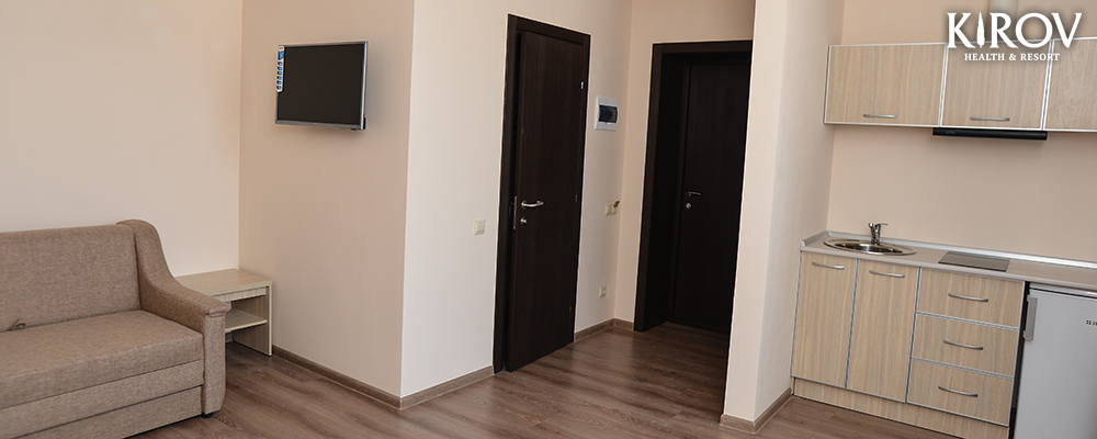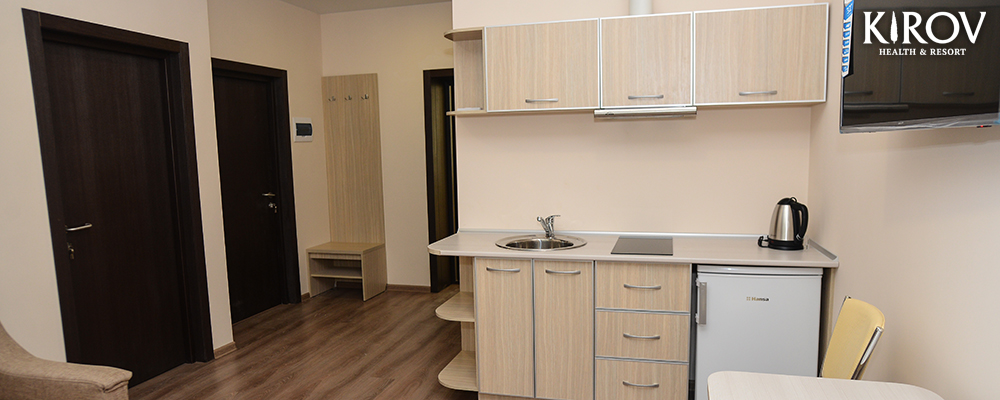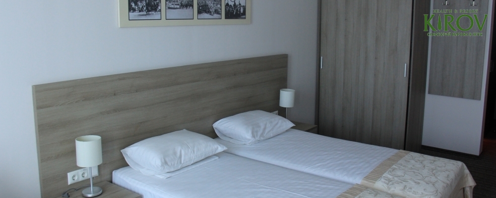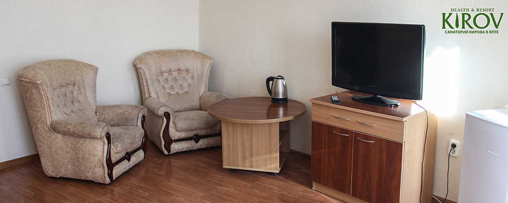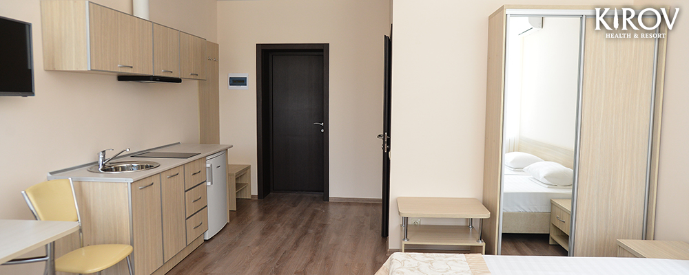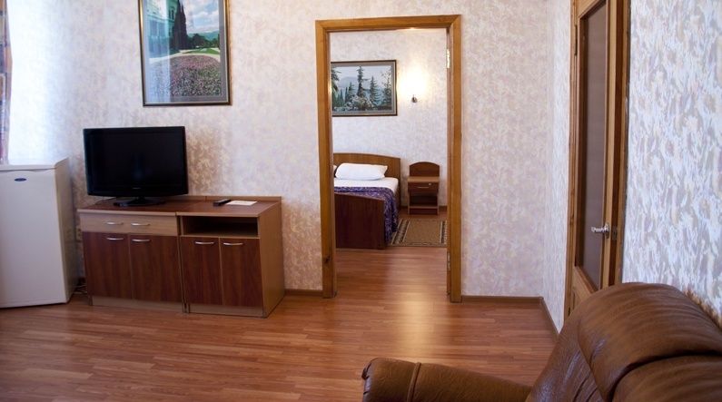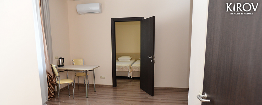 - 2х местный 2-х комнатный Апартаменты. Площадь: 34 кв.м. В номере: одна двуспальная кровать или две односпальные кровати, комната с мебелью, телевизор, кондиционер, кухня, холодильник, санузел с душем, фен.