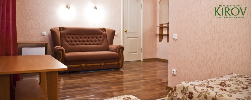 - 2х местный 2-х комнатный стандарт семейный. Площадь: 33 кв.м. В номере: спальня с двуспальной кроватью, гостиная с мягкой мебелью, холодильник, телевизор, кондиционер, набор посуды, мебель на балконе, санузел с душем, туалет. Дополнительные места – диван и раскладушка.