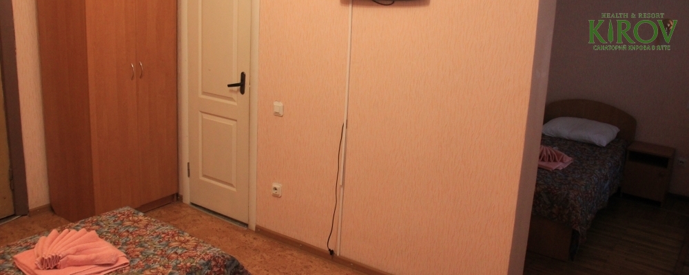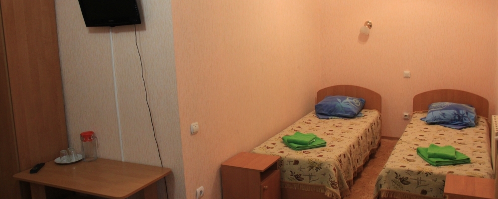 - 2х местный 1-но комнатный с частичными удобствами. Площадь: 12-18 кв.м. В номере: односпальные кровати, набор посуды, мебель на балконе, умывальник. Санузел общий на этаже. Дополнительное место - раскладушка.