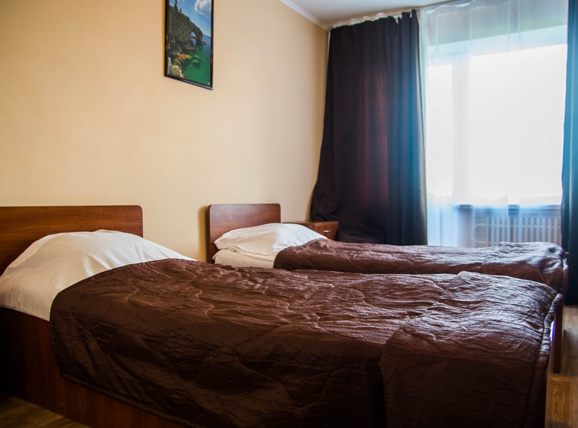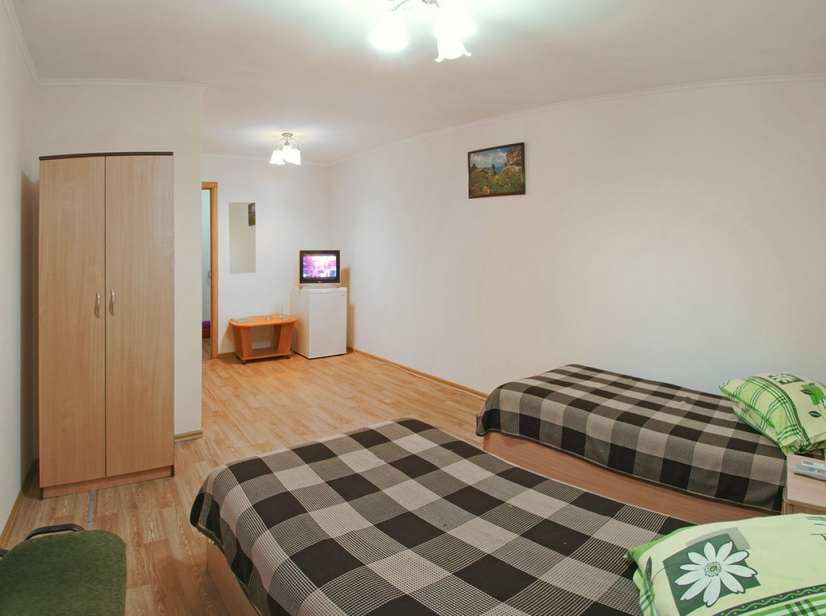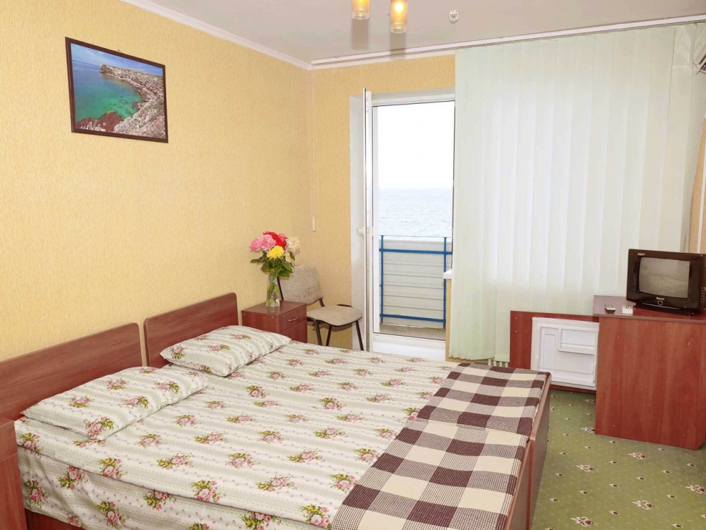 - 2-х местный 1-но комнатный стандарт. Площадь: 13 м². В номере: две односпальные кровати, кондиционер, телевизор, холодильник, санузел с душем, балкон.