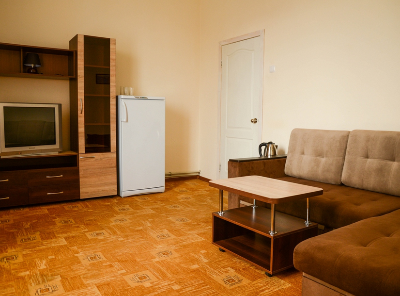 - 3-х местный 2х комнатный полулюкс. Площадь: 26 кв.м. В номере: спальная с двуспальной кроватью, гостиная с диваном, кондиционер, телевизор, холодильник, электрический чайник, чайный набор, санузел с душем.