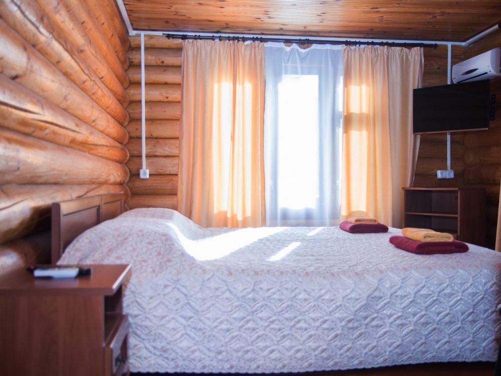 - 2-х местный 1-но комнатный. В номере: двуспальная кровать, кондиционер, телевизор, холодильник, санузел с душем. Номера с собственным входом, расположены в 2х этажных коттеджах (4 номера в каждом коттедже).