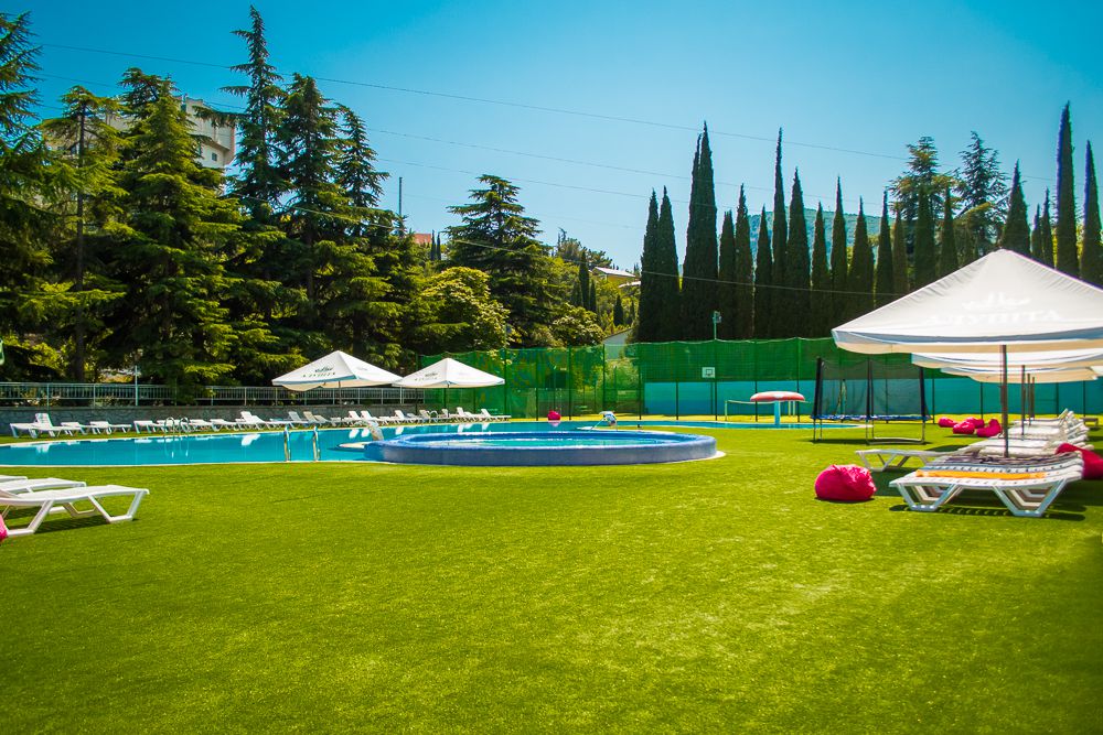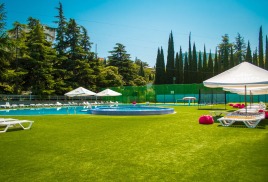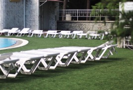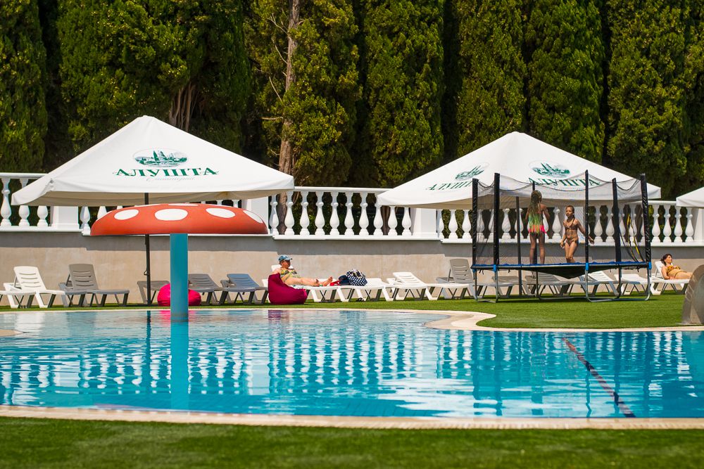 К Вашим услугам открытый бассейн с пресной водой площадью 345 кв.м. и глубиной 1,6 м. Также на территории бассейна оборудованная детская зона, зона отдыха с прохладительными напитками.