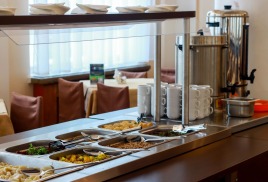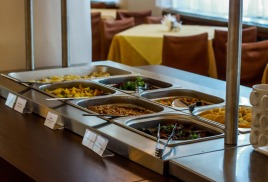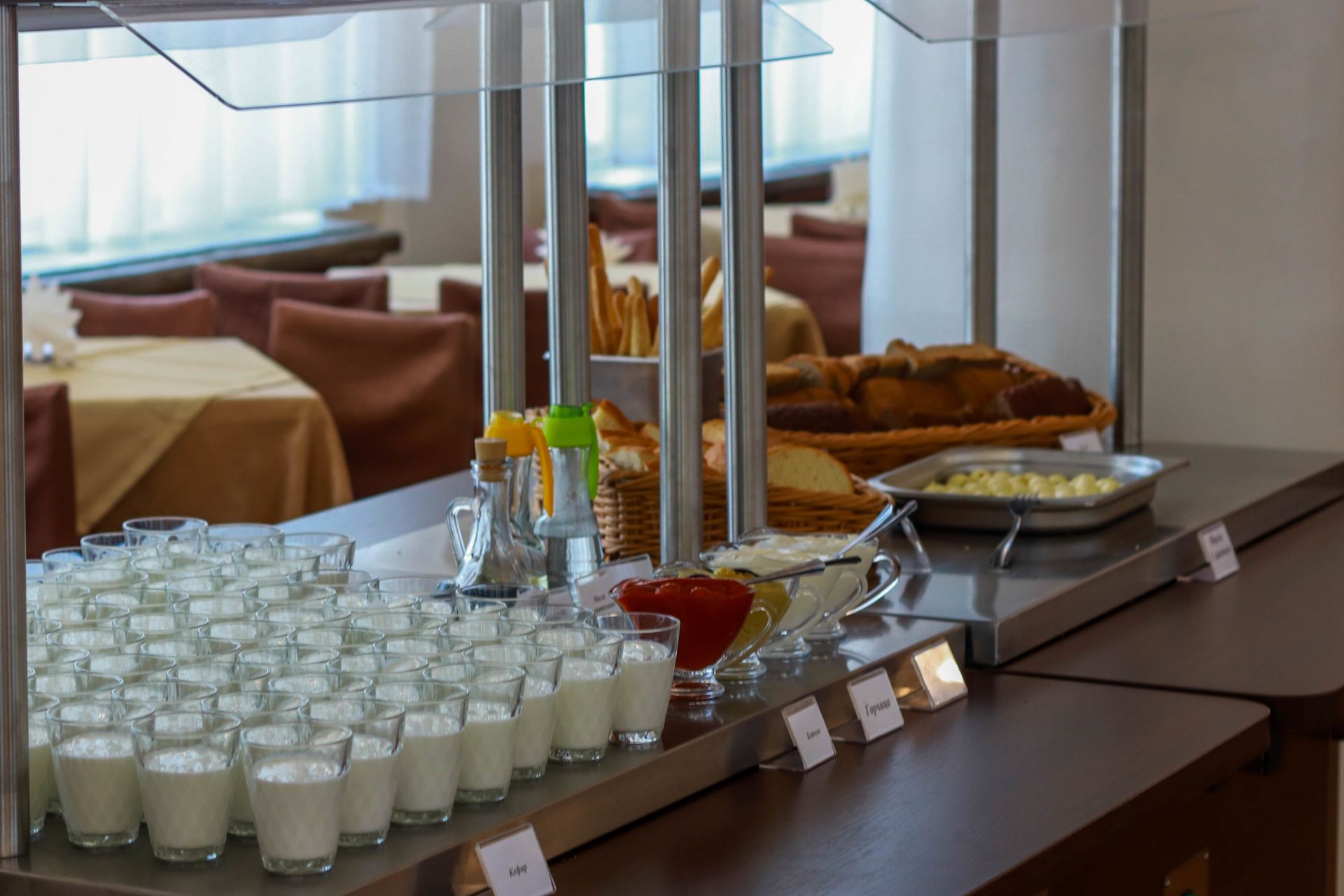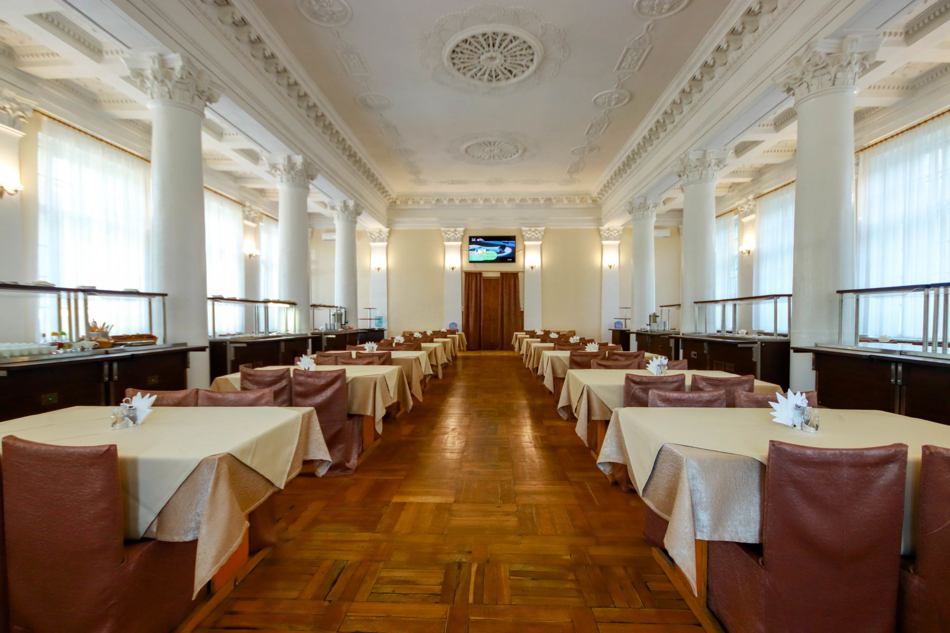 Санаторий «Алушта» предлагает своим гостям полноценное 3-х разовое питание по системе «Шведский стол» с учетом диет в обновленном комфортном зале с продуманной организацией раздаточной линии и подачи различных блюд.
