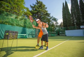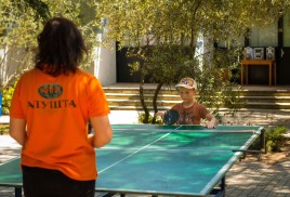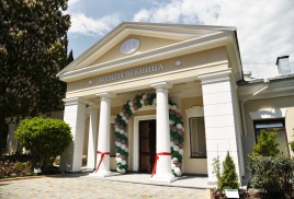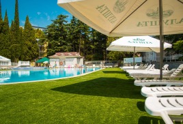 Пляж санатория собственный галечный, протяженностью 200м., оборудованный шезлонгами, теневыми навесами и медицинскими услугами, средствами развлечения на воде.