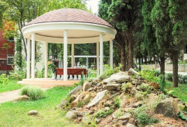 Главной достопримечательностью Санатория «Алушта» является уникальный по красоте южнобережный парк с вечнозелеными растениями. Здесь специально подобраны деревья, благотворно влияющие на органы дыхания и обладающие сильно выраженным антимикробным действием.