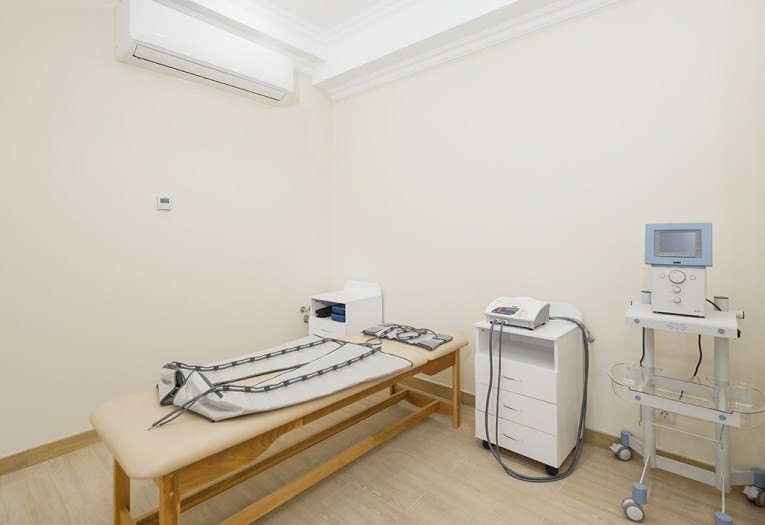 - физиотерапия: УФО, СМТ — терапия (амплипульстерапия), магнитотерапия, лазеротерапия, ультразвуковая терапия, транскраниальная электронейростимуляция головного мозга на аппарате «Трансаир», лекарственный электрофорез