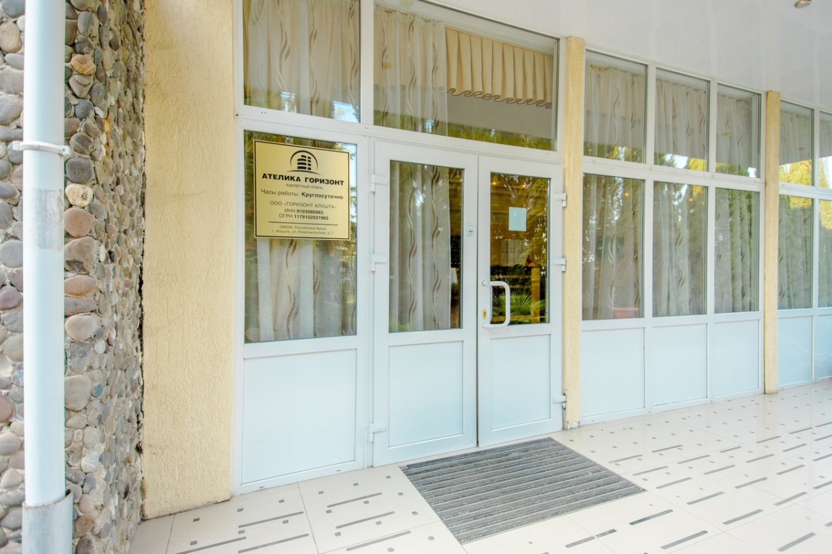 Курортный отель «Ателика Горизонт» 2** расположен на высоком берегу живописного курортного района Алушты – Профессорский уголок. Это место, расположенное к западу от центра Алушты, издавна привлекает ценителей отдыха на Южном берегу Крыма из-за богатой природы и мягкого целебного климата. Кроме прекрасной природы, отдыхающих встречает великолепная набережная, самая протяженная в Крыму, где расположились множество сувенирных магазинов, баров, аттракционов, развлечений, экскурсионных бюро, а также лавки со свежими крымским фруктами и овощами.