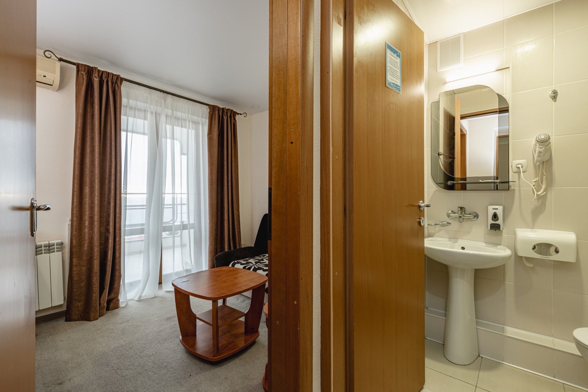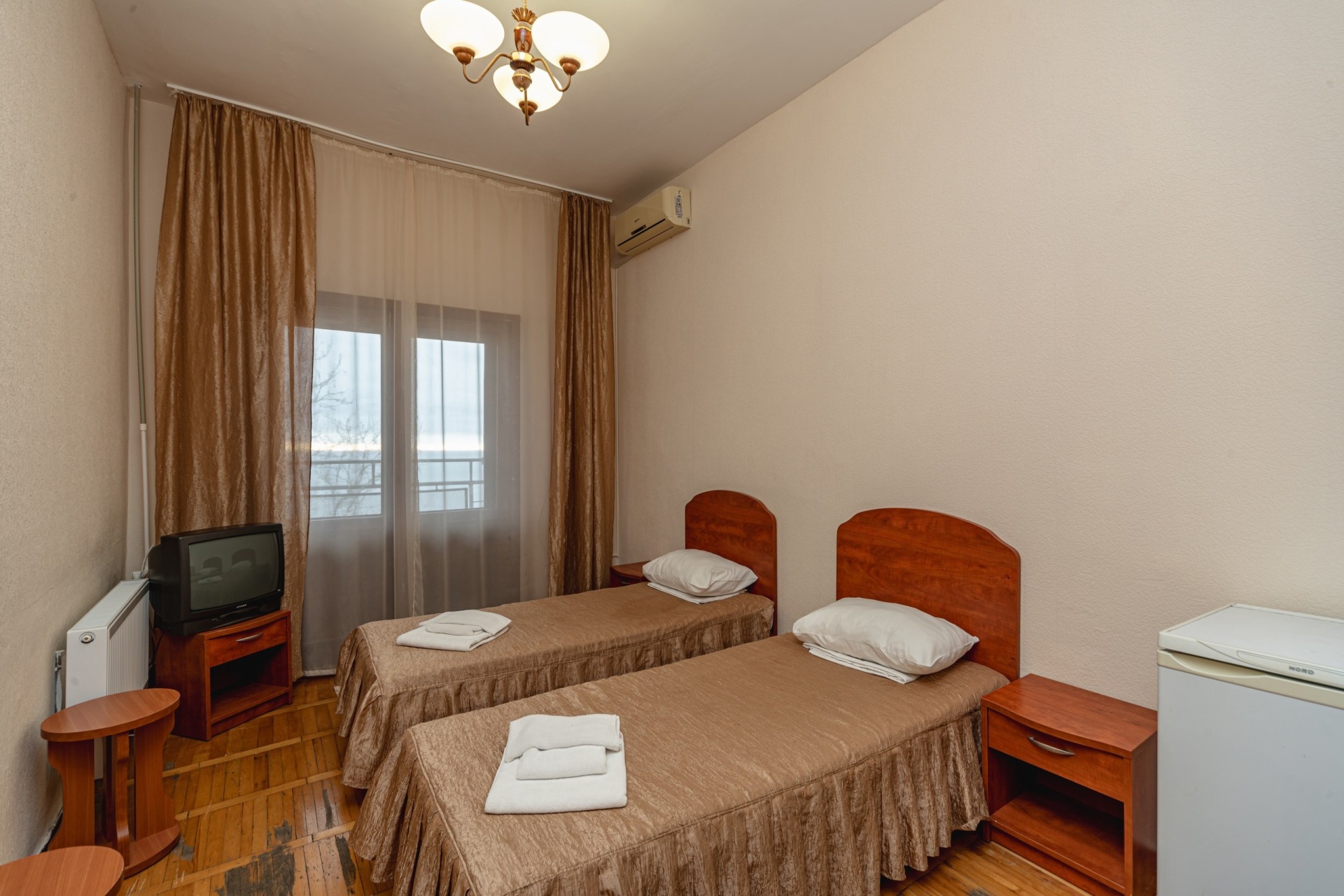 - 2-местный 1-комнатный Эконом Север/Юг. В номере: две односпальные или одна двуспальная кровать, санузел с душем, телевизор и холодильник, балкон.