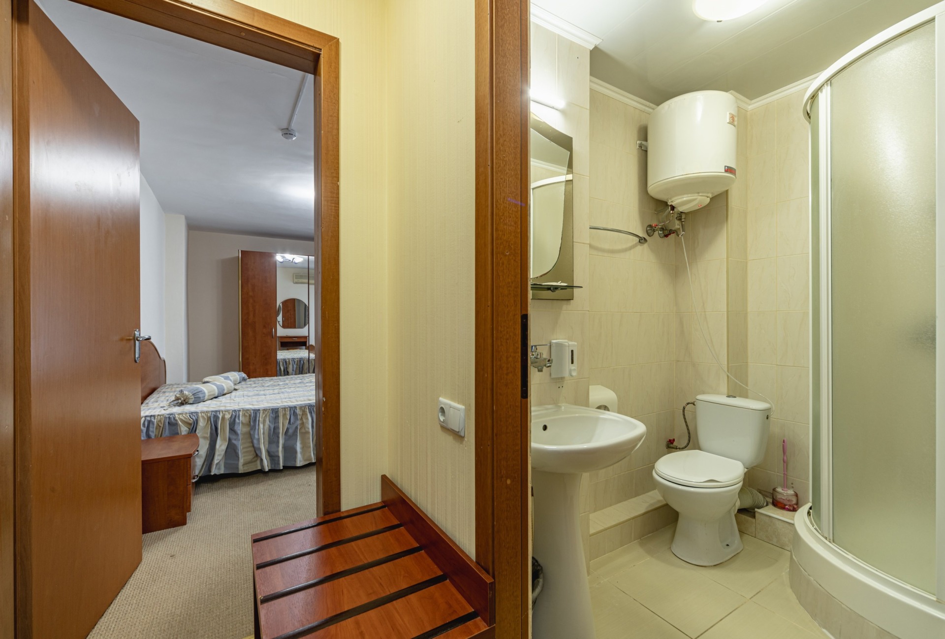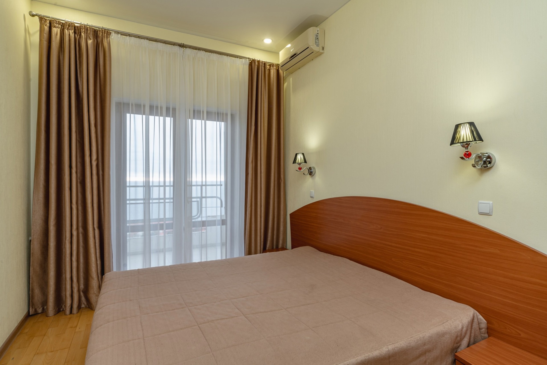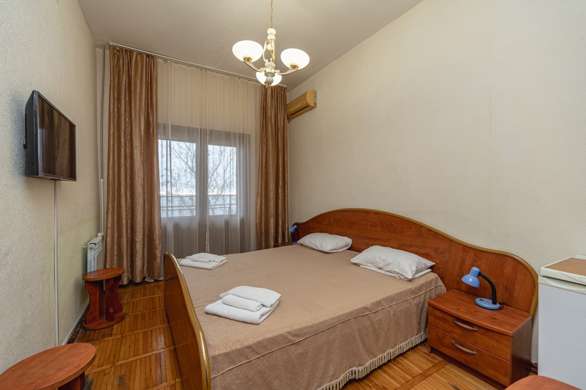 - 2-местный 1-комнатный Стандарт Север / Юг. В номере: двуспальная кровать, санузел с душем, телевизор, холодильник, бойлер, кондиционер, балкон.