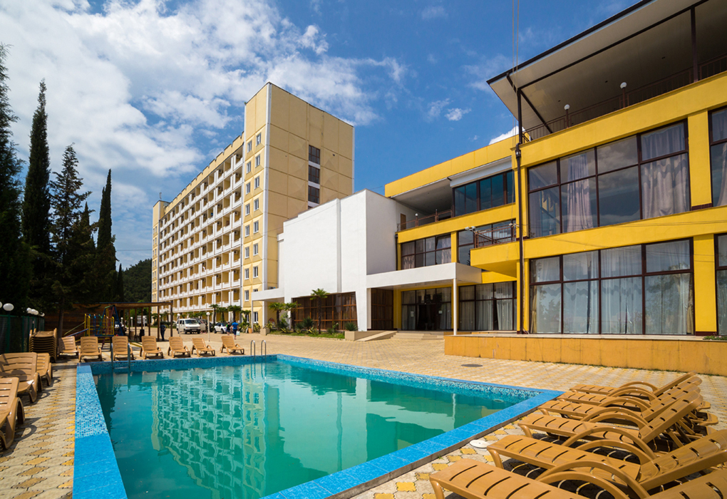 Можно воспользоваться услугами экскурсионного бюро и отправиться в увлекательную поездку к достопримечательностям Гагры, Пицунды, Нового Афона, Сухума, оз. Рицы и т.д. Также есть аптека и бесплатная парковка. Спуститься к морю можно при помощи обзорного лифта и небольшого подземного перехода. Вы попадаете на прекрасный песчано-галечный пляж. Для бесплатного пользования предоставлено достаточное количество шезлонгов. Для людей, предпочитающих активные виды отдыха, есть центр водо-моторного спорта, где можно взять напрокат водные лыжи, гидроциклы и водные велосипеды.