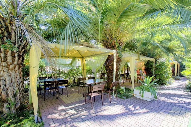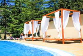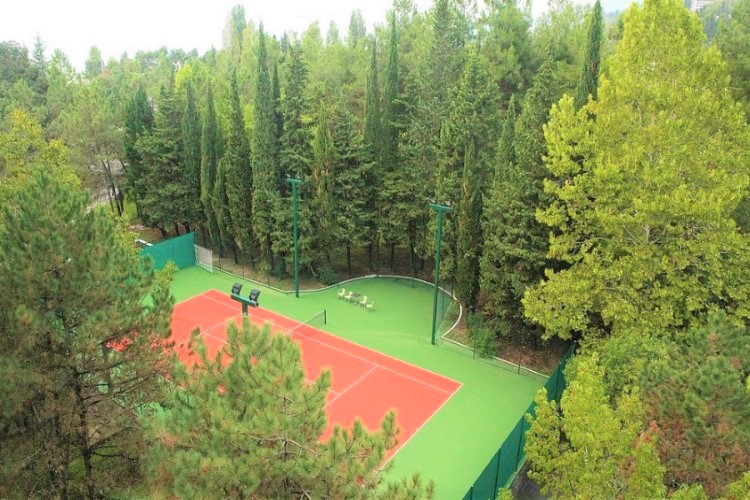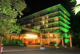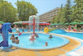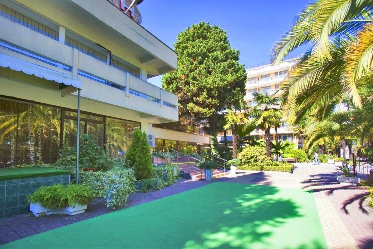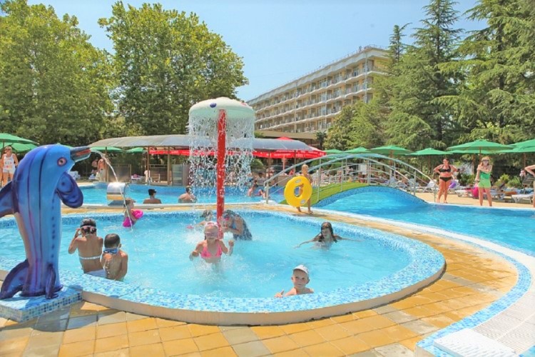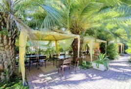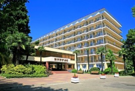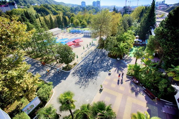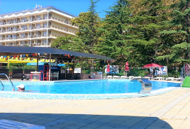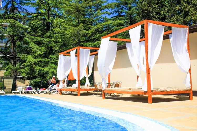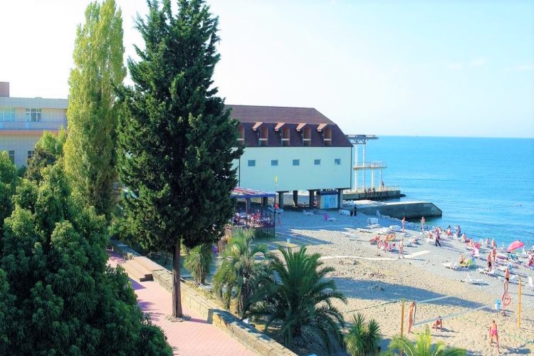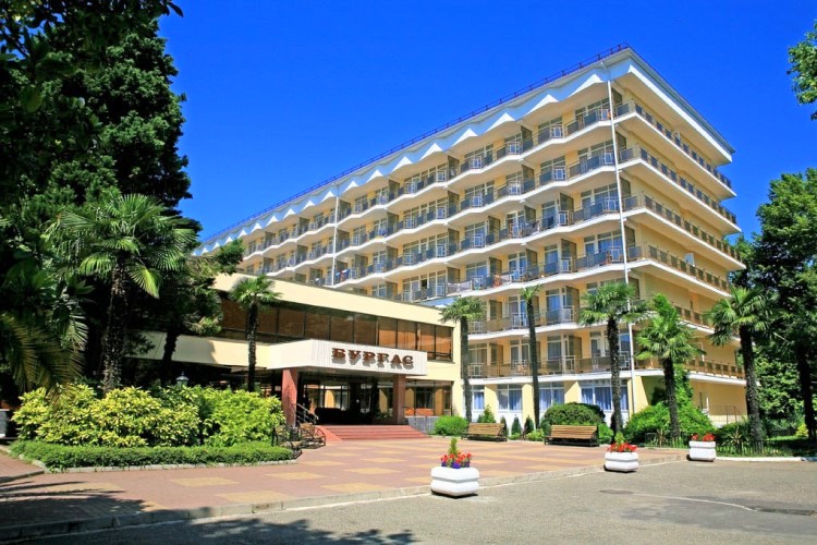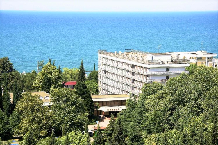 Пансионат «Бургас» расположился на первой береговой линии в окружении зеленых пальм и собственного дендропарка, где можно полюбоваться редкими видами южных растений.