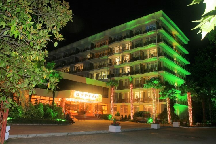 Пансионат «Бургас»*** - это современный гостиничный комплекс, имеющий собственный многопрофильный медицинский центр и уникальную инфраструктуру. «Бургас» расположен на самом берегу Черного моря в курортной зоне Адлерского района города Сочи, в 20 минутах езды от центра города Сочи и международного аэропорта, в 15 минутах - от железнодорожного вокзала. В апреле 2013 года пансионат прошел международную сертификацию на соответствие категории 3 звезды.