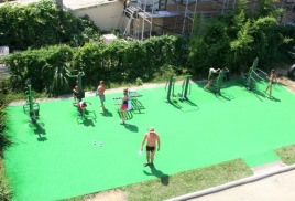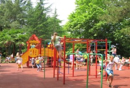 К вашим услугам: детская анимационная программа, тематические дни (встреча с любимыми героями), творческие мастерские, концертные программы, игры, квесты, детский бассейн, пляж (пользование лежаками), детские площадки и веревочный парк, волейбольное и футбольное поле, теннисный корт и уличные тренажеры.