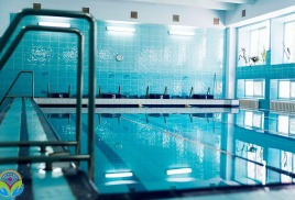 Характеристика бассейна: 4 дорожки по 12,5 метров, глубина – 182 см, температура воды 26-27ºС, время работы: ежедневно.