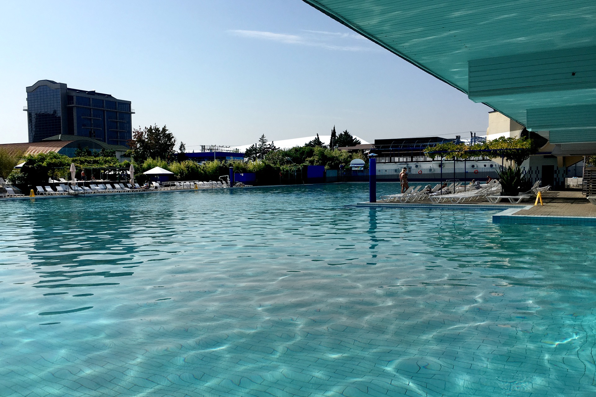 Плавательный бассейн санатория «Адлеркурорт» является самым большим открытым бассейном с морской водой в Европе. Площадь зеркала воды = 3000 кв. м. Глубина — 1,45 м. Для самых маленьких гостей есть детская 2-х уровневая плескательница с горкой, глубиной 0,6 м, детский плавательный бассейн глубиной 0,9 м.