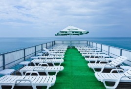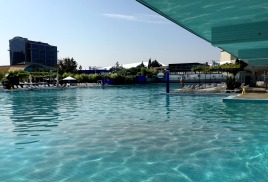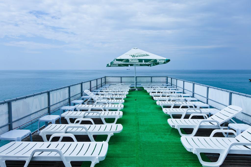 Для комфортного отдыха на территории бассейна расположены душевые, санузел, медпункт, кафе, деревянные лежаки и теневые навесы.