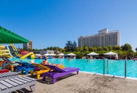 Четыре корпуса с различными категориями номеров на любой вкус и бюджет готовы принять одновременно более 2500 гостей. Адлеркурорт обладает особой атмосферой и возможностью выбора такого направления в отдыхе, которое будет для Вас полезным и интересным. К Вашим услугам разнообразные медицинские программы, водолечебный центр, спелеокамера, бассейн с морской водой, широкий выбор развлекательных программ, организация детского досуга, спортивные площадки, благоустроенные пляжи.