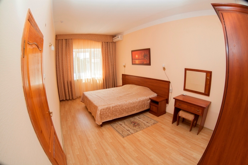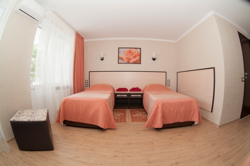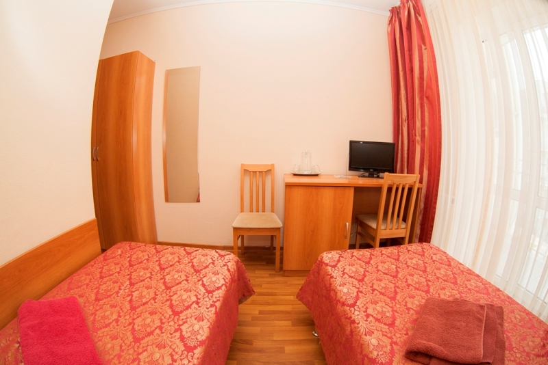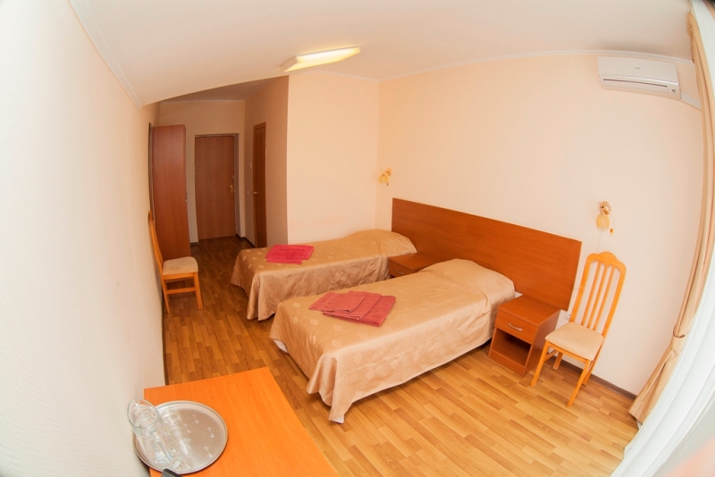 - 1-комнатный 2-местный номер (стандарт) Корпус №3 - в некоторых номерах есть дополнительные места. В номере: две одноместные кровати, две прикроватные тумбочки, шкаф/платяной шкаф, стулья, стол/туалетный стол, сплит-система, потолочное освещение, прикроватный светильник, телевизор, мини-холодильник.В ванной комнате: ванная/душевая кабина, санузел, зеркало, туалетные принадлежности.