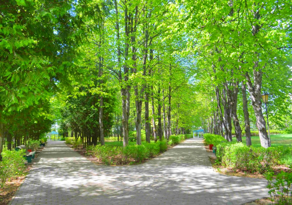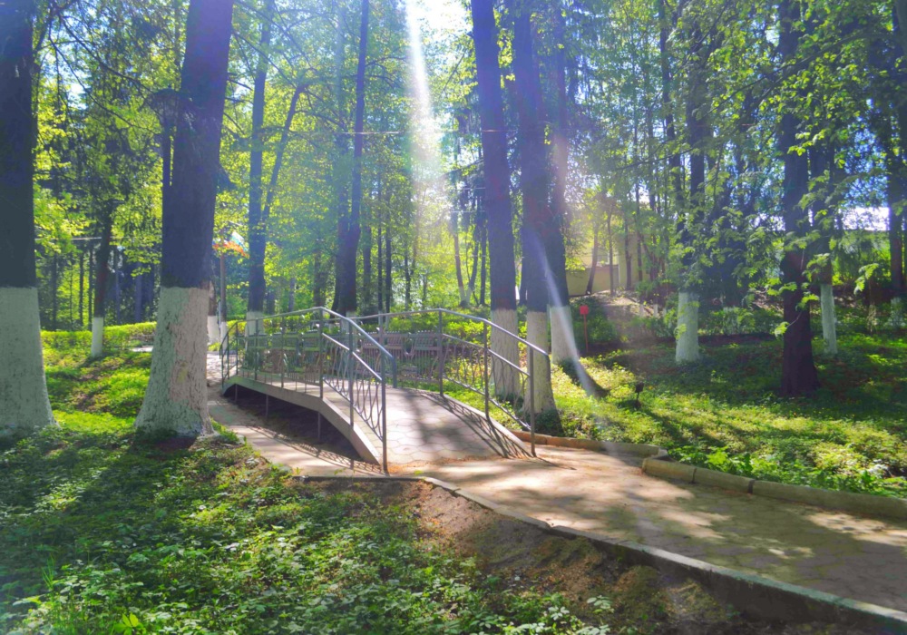 Территория санатория благоустроена большую часть территории занимает лесопарковая зона. На территории лесопарковой зоны санатория расположены прогулочные дорожки, терренкур, скамейки для отдыха, ажурные беседки. Терренкур представлен тремя маршрутами, отличающимися по протяженности и степени нагрузки.