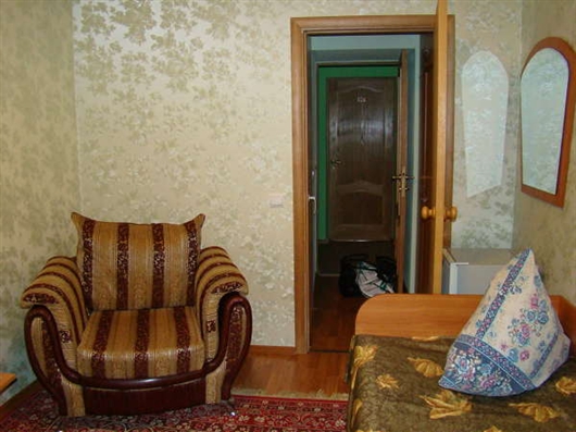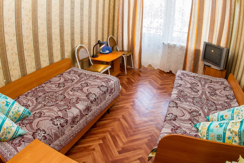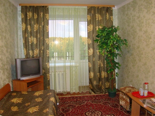 - 1, 2-х местные 1-комнатные номера(стандарт): санузел совмещённый: душ и унитаз, телевизор, холодильник, лоджия, 1,5-спальная кровать, тумба, шкаф, журнальный стол.