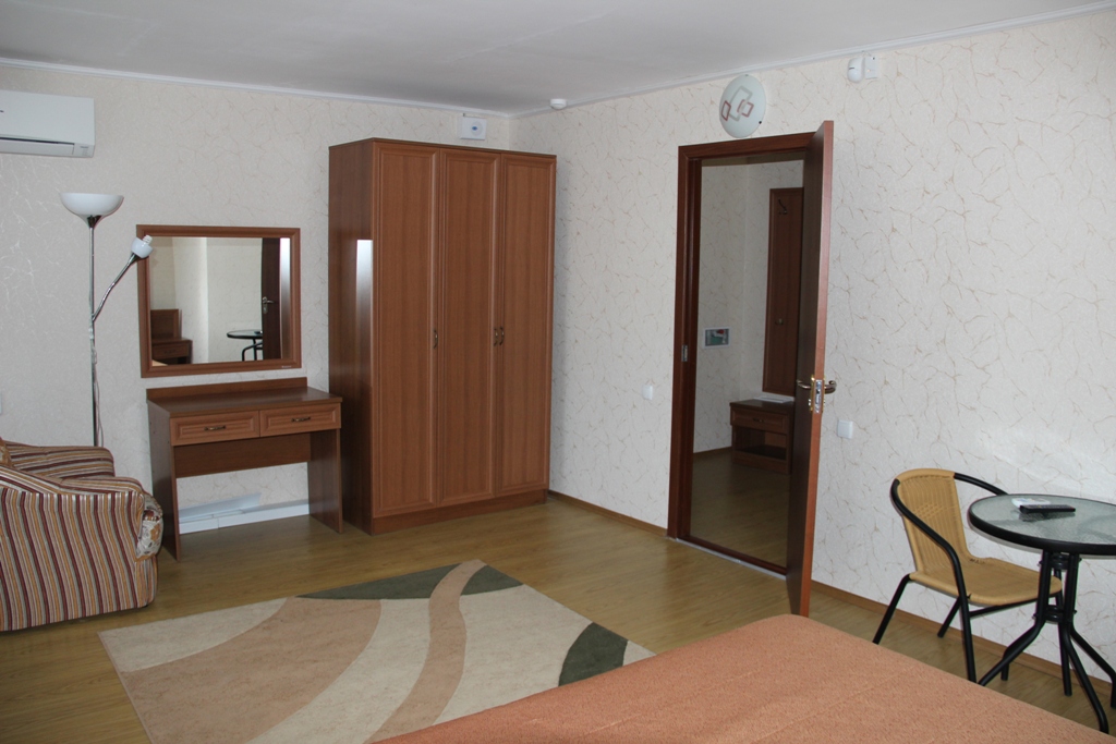 - 2-местный 2-комнатный. В номере: спальня с двуспальной кроватью, гостиная с диваном, телевизор, холодильник, кондиционер, санузел, балкон.
