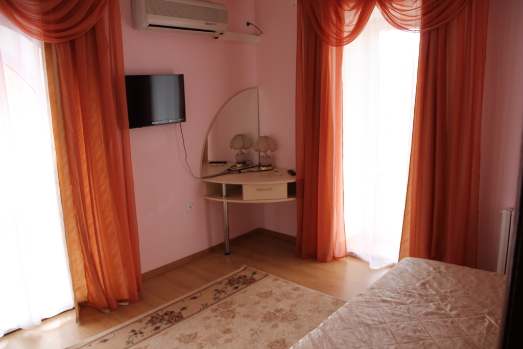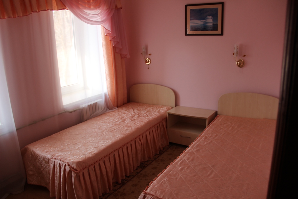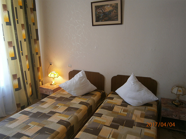 - 2-местный 1-комнатный. В номере: две односпальные кровати, телевизор, холодильник, кондиционер, санузел, балкон.