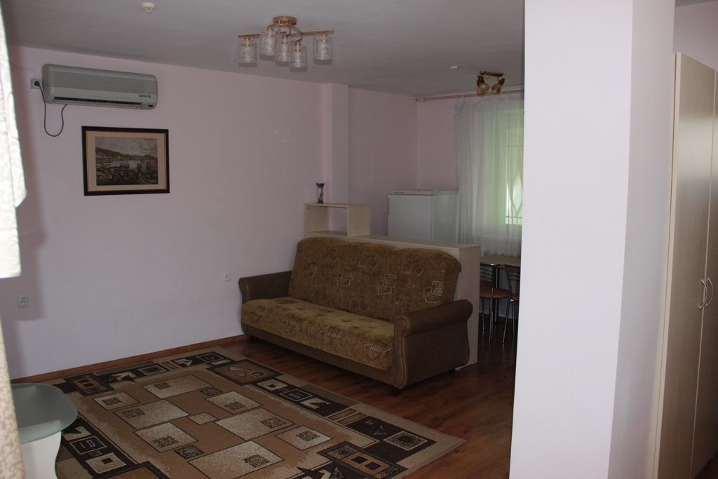 - 1-местный 1-комнатный. В номере: полутороспальная кровать, телевизор, холодильник, кондиционер, санузел, балкон.