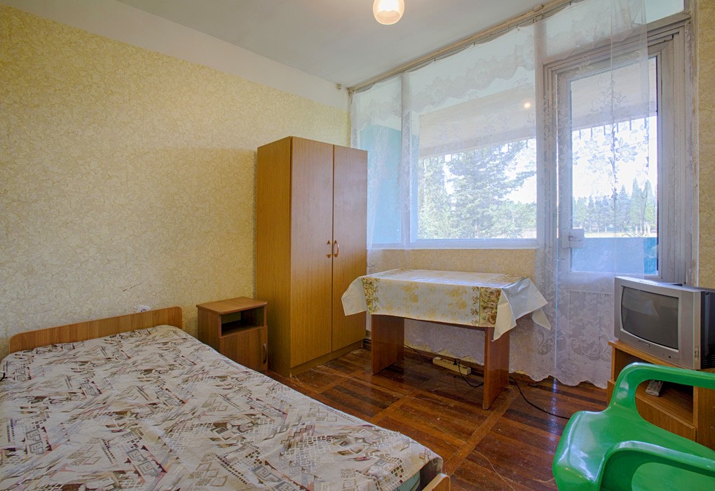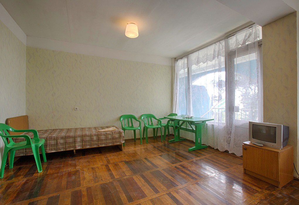 4-местный 2-комнатный номер (макс. 4+1 чел., 30 кв. м, телевизор, душ, туалет, балкон). Доп. место - раскладушка, может быть установлена без ограничения по возрасту.