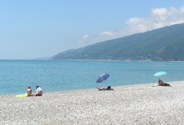 От пансионата «Геч» до благоустроенного пляжа всего три минуты неспешной прогулки. Пляж общекурортный, галечный. Оборудован зонтами для защиты от солнца и лежаками за дополнительную плату.