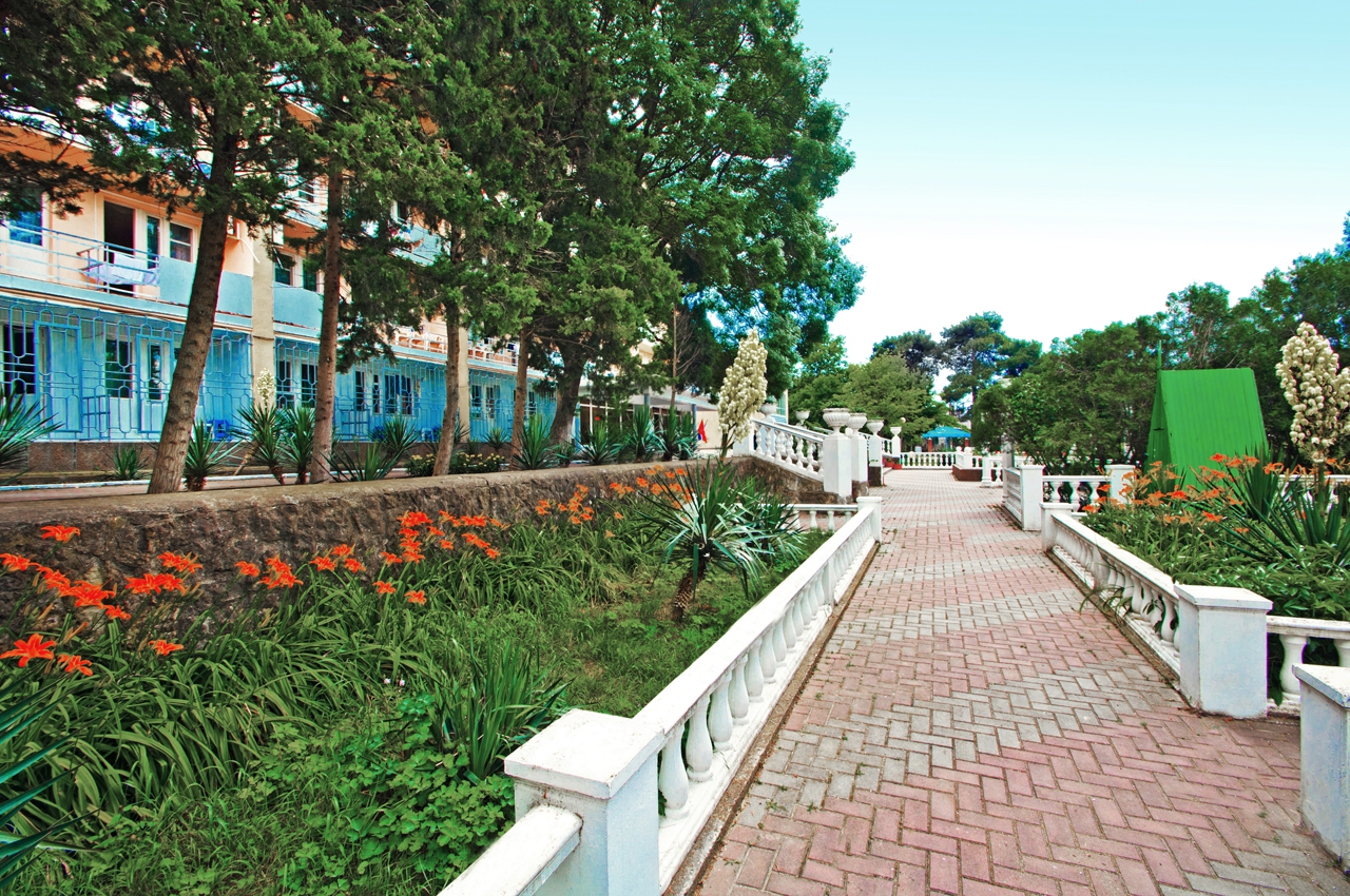 Пансионат представляет собой один пятиэтажный спальный корпус с номерами различной категории .Отдельным крылом выведена светлая столовая, рассчитанная на 240 посадочных мест. Территория пансионата озелененная, огороженная и охраняемая. Безопасность наших гостей обеспечивается системами пожаротушения и видеонаблюдения.