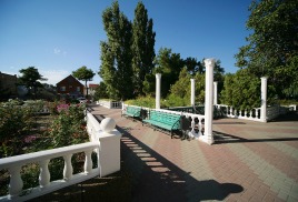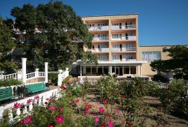 Пляж песчаный общекурортный, расположен в 600 м от пансионата, галечный общекурортный - в 500м. На пляже к Вашим услугам шезлонги, зонтики, прокат пляжного оборудования.