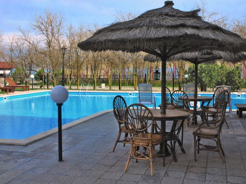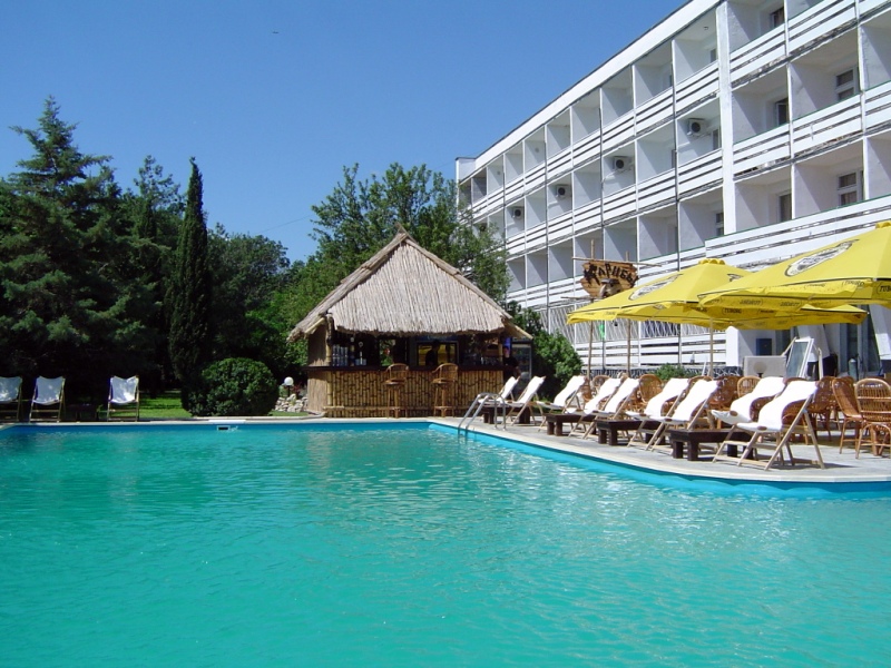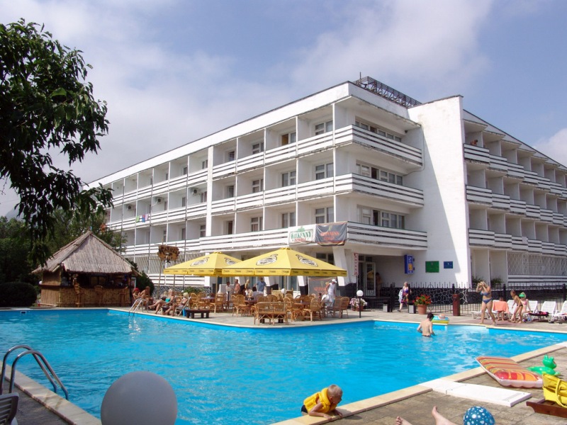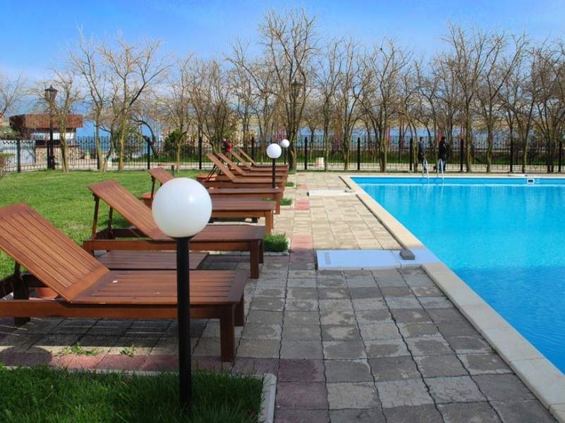 В пансионате к услугам открытый бассейн с пресной водой. Площадь 200 кв. м. Входит в стоимость только для 2-комнатных номеров 1 категории и апартаментов.