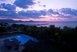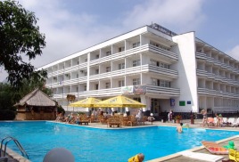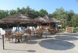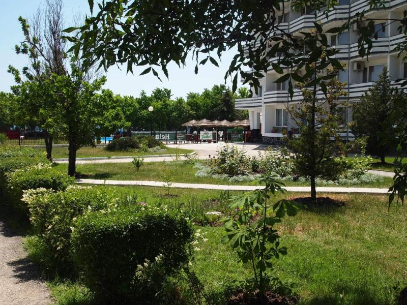 В 50-100 метров от корпусов находится собственный галечный оборудованный пляж с теневыми навесами. Прокат шезлонгов за дополнительную плату. К услугам отдыхающих катамараны и водные мотоциклы.