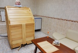- «Сухие углекислые ванны» для некоторых категорий больных (ванны «Реабокс»). Положительной стороной применения сухих углекислых ванн является то, что при этом отпадает влияние гидростатического давления воды, которое в условиях обычной минеральной ванны переносится удовлетворительно не всеми больными, особенно пожилыми. Вот таким больным предпочтительно назначение сухих газовых ванн.