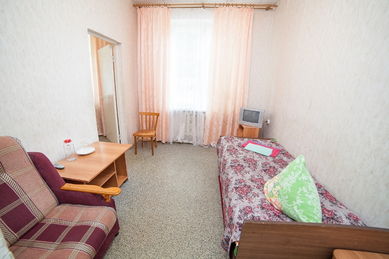 Размещение в кирпичных 2-х этажных корпусах, в одно-, двухместных номерах с удобствами (туалет, душ, ТВ). Имеются 2-х комнатные номера повышенной комфортности и категории люкс.