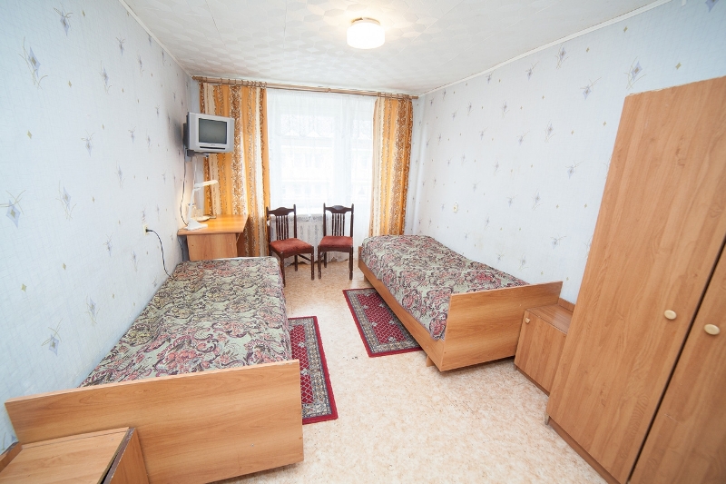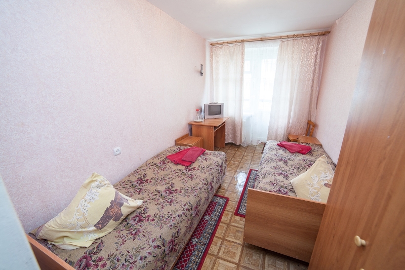 - 1-но и 2-х местные 1но-комнатные номера с удобствами. В номере: 2 полутораспальные кровати, ТВ, гардероб, 2 тумбы, стол, 2 стула, сан.узел совмещенный (душ,туалет). Большинство номеров с балконом.