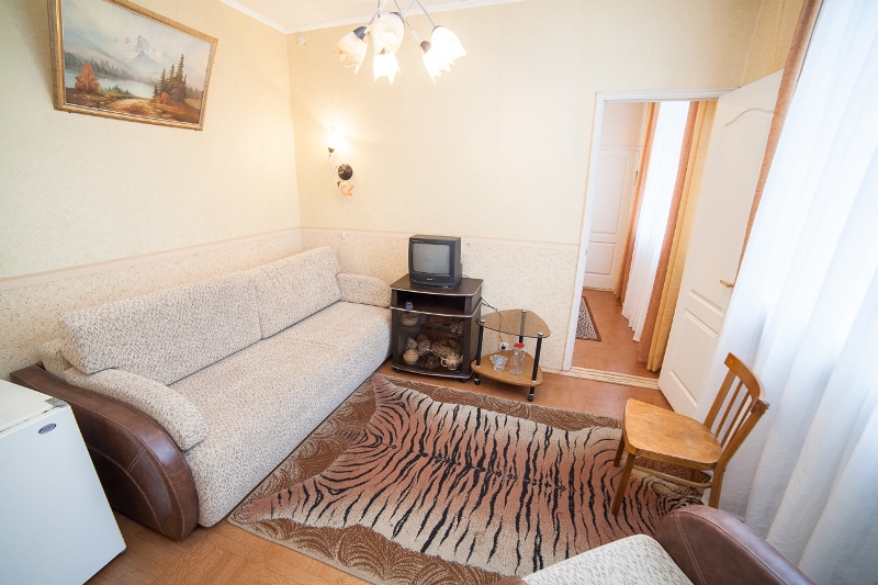 - 2-х комнатные номера повышенной комфортности (2 шт., корп.№2). Номера с отдельным входом. Прихожая, гостиная, спальня. В гостиной комплект мягкой мебели, ТВ, холодильник. В спальне расположена двуспальная кровать, 2 тумбы. Сан.узел совмещенный (ванна,туалет).