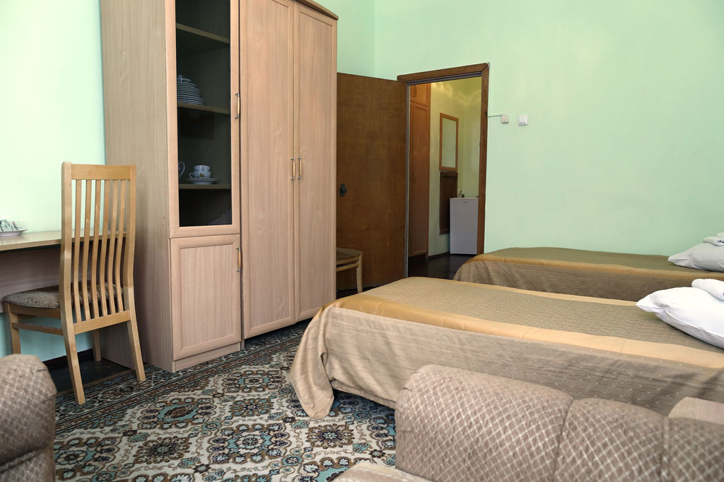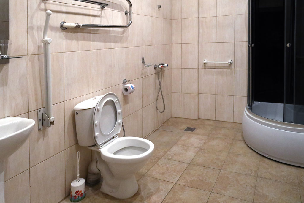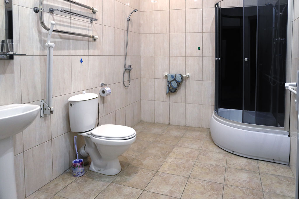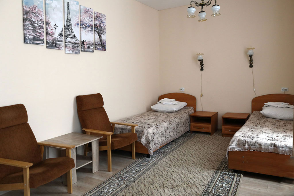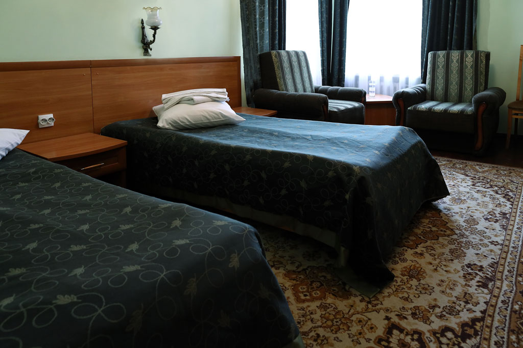 Размещение: Спальный 3-этажный корпус оснащен пассажирским лифтом и лифтом для перевозки больных. Лечебный 3-этажный корпус соединен со спальным и спортивным корпусами теплыми переходами.