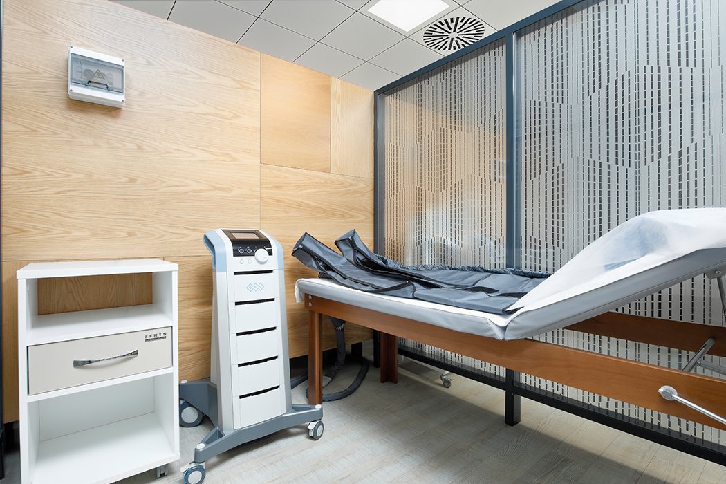 - Физиолечение: лазеротерапия, ультразвук- лимфопрессотерапия, электротерапия, магнитотерапия, общая магнитотерапия на аппарате «Мультимаг», СМТ, ударно-волновая терапия, локальная криотерапия.
