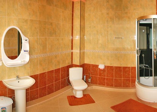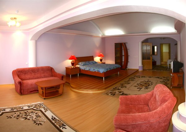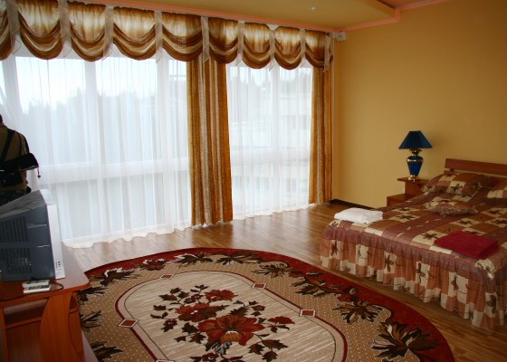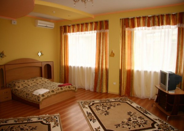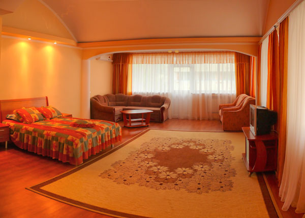 - 2-х, 3-х, 4-х местный номер Люкс. Площадь - 50 м2. В номере: кондиционер, телевизор, спутниковое ТВ, холодильник, чайник, утюг, балкон, посуда, гидромассажный душ, туалет, умывальник.