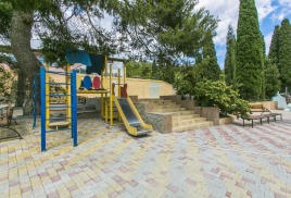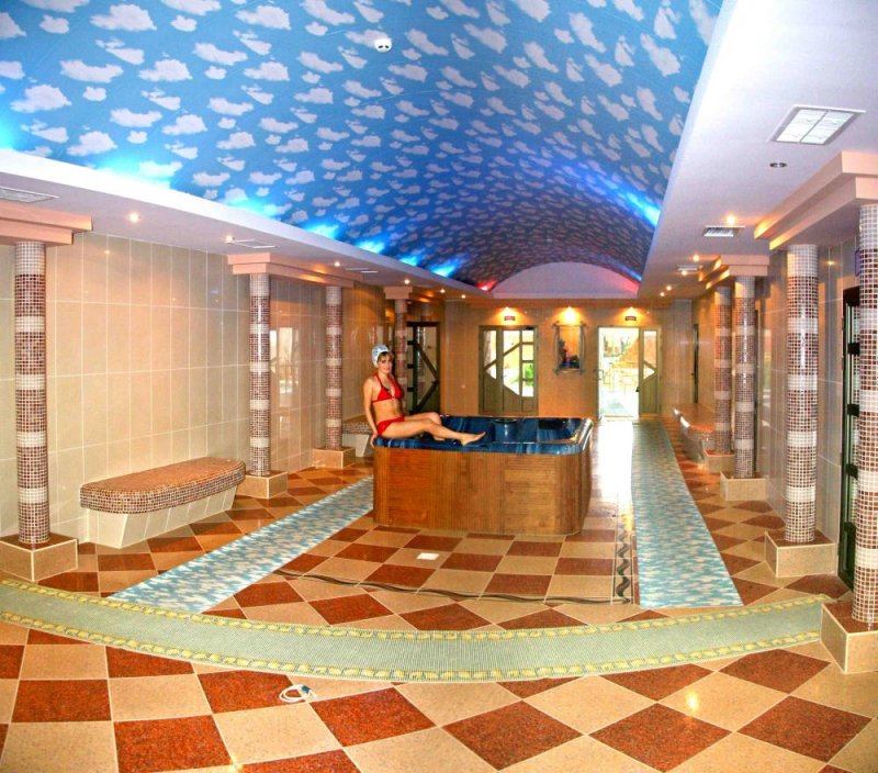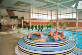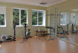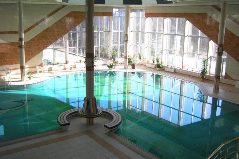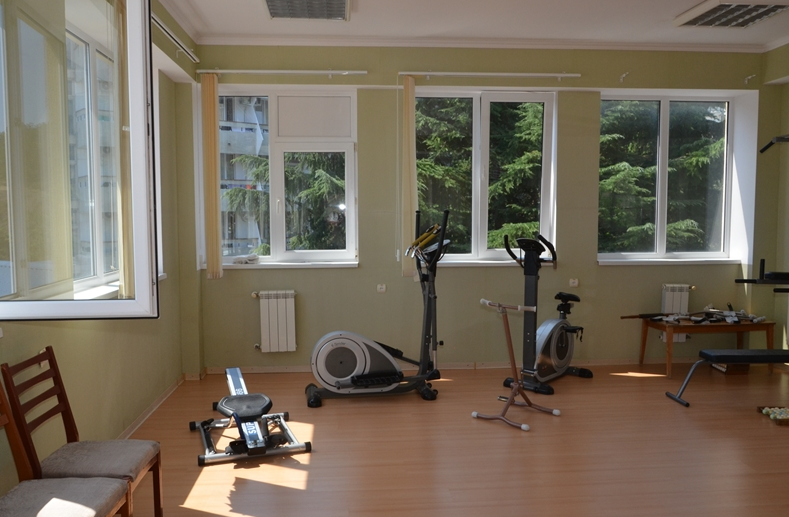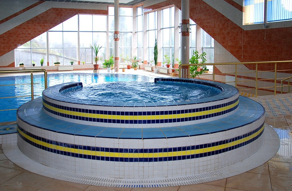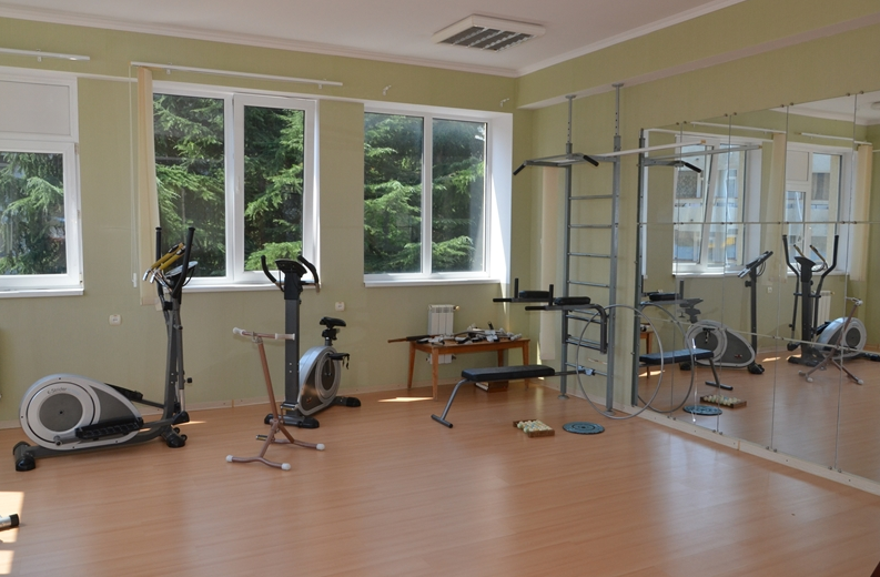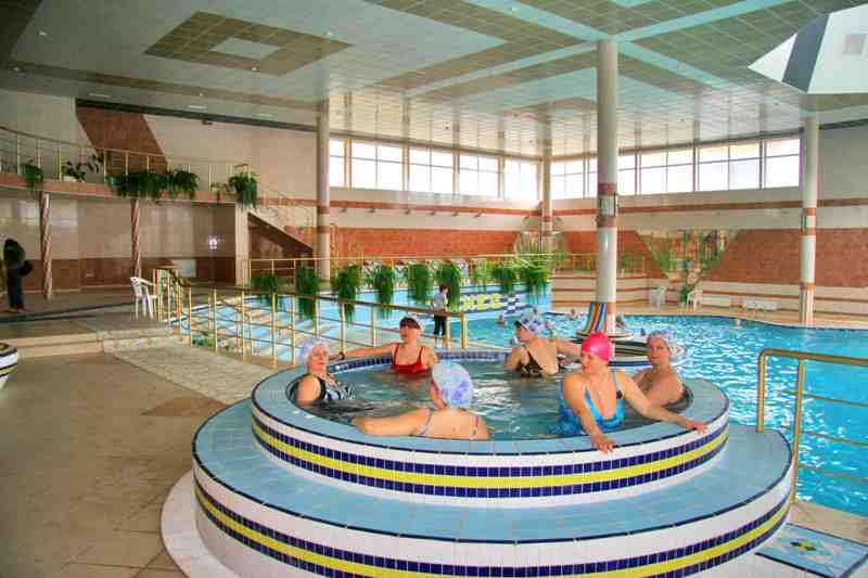 В санатории «Киев» отличный спортивно-оздоровительный комплекс с бассейном, сауной, баней, джакузи, бильярдом, тренажерным залом, спортплощадкой для активных игр.