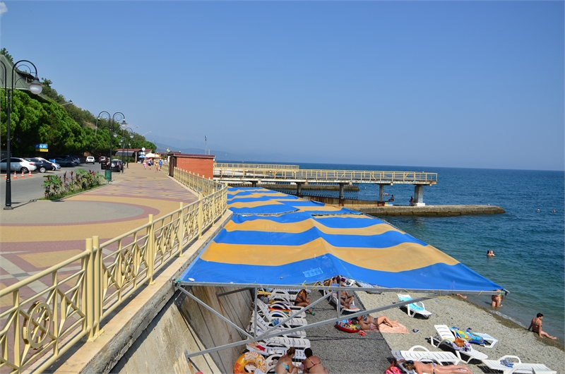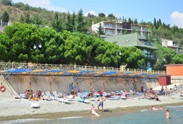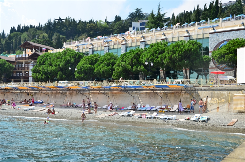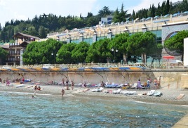Пляж санатория собственный, покрыт мелкой галькой. Находится в 600 метрах от санатория. К услугам отдыхающих лежаки, раздевалки, навесы, водные развлечения.
