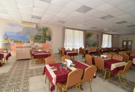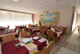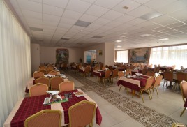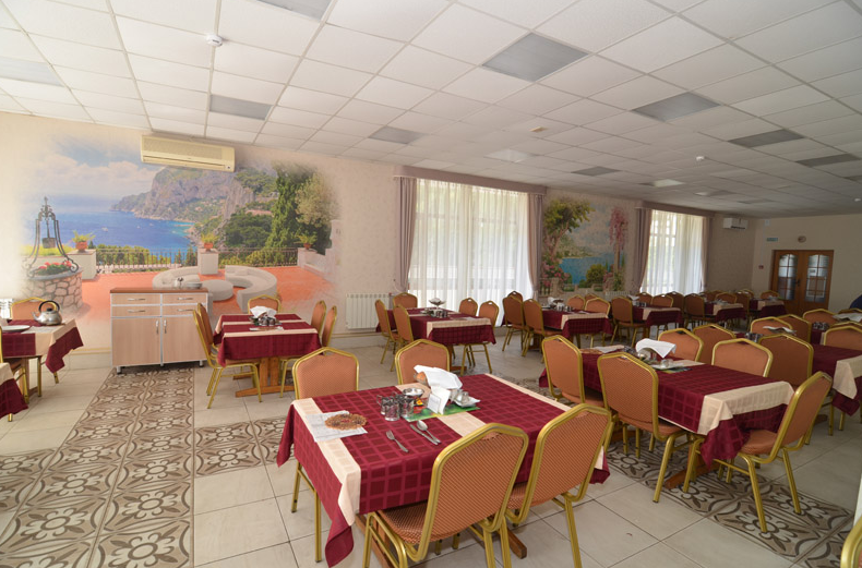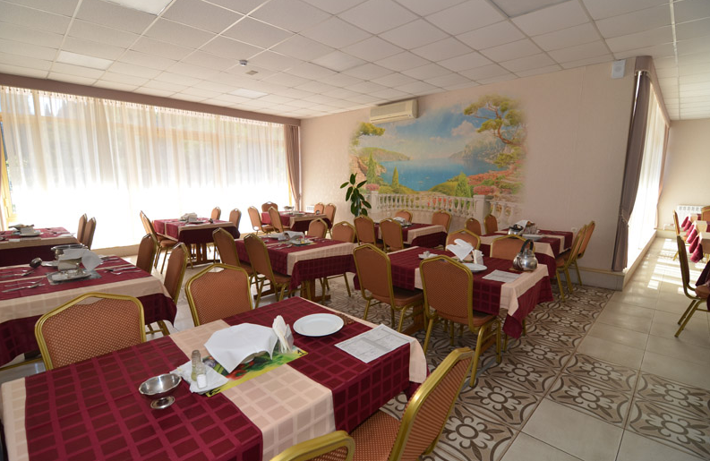 В уютной столовой с кондиционером гостям санатория «Киев» предлагается 3-разовое питание, возможно питание по заказному меню. В любое время года рацион отдыхающих состоит из разнообразных полезных блюд, включает большое количество овощей и фруктов. Санаторий «Киев» большое внимание уделяет организации диетического питания.