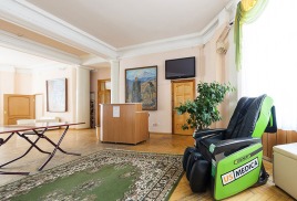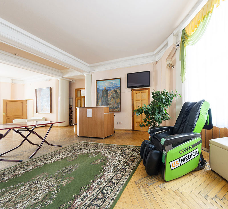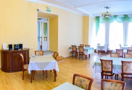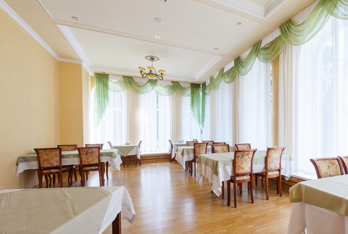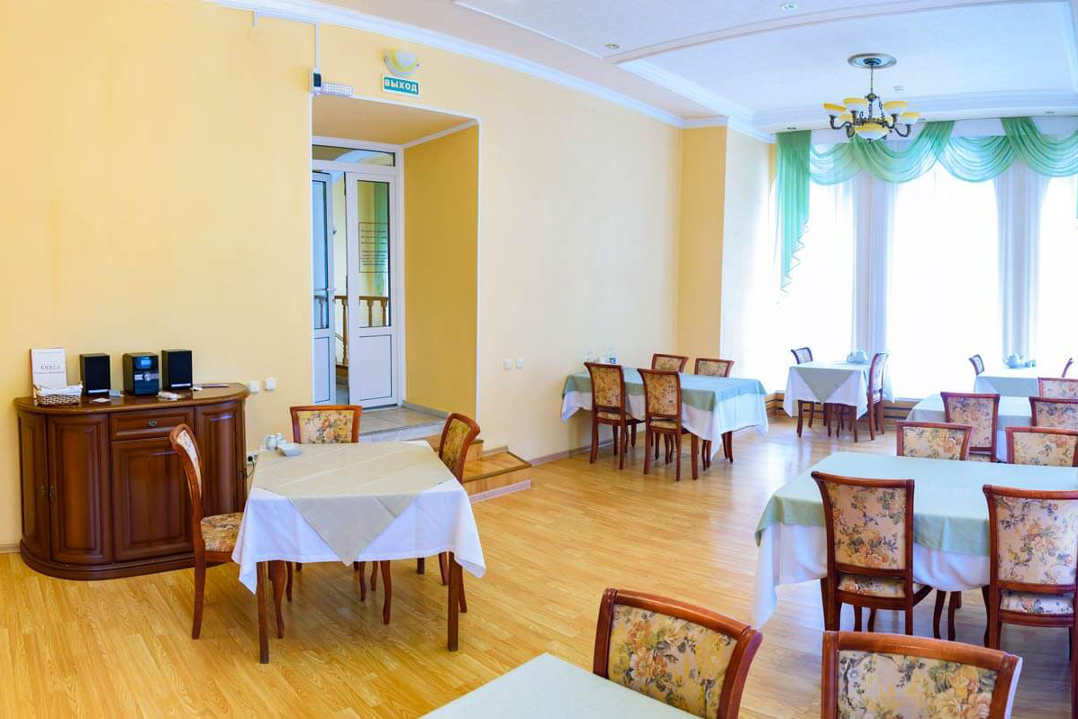 Одним из достоинств нашего санатория является небольшая коечная емкость — 145 мест, что располагает к спокойному уединенному отдыху. Во всех номерах есть телевизоры и холодильники. Из окон открывается прекрасный вид на курортный парк. При санатории бесплатная охраняемая автостоянка. Питание — 4-разовое диетическое по системе «меню-заказ». По каждому лечебному профилю разработана диетическая терапия. Для проведения часов досуга к Вашим услугам культурно-развлекательная и экскурсионная программы.