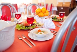 Питание в санатории диетическое заказное 4-х разовое с большим ассортиментом основных блюд и закусок; включает в себя завтрак, обед, ужин и кефир. Вы делаете предварительный заказ на следующий день по предлагаемому меню, содержащему альтернативный набор первых и вторых блюд. Предусмотрено меню по категории «люкс», праздничное меню, разнообразные вегетарианские блюда.