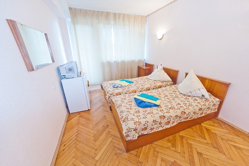 В номере: две односпальные кровати или одна двуспальная кровать, прикроватные тумбочки, стулья, стол, кондиционер, зеркало, холодильник, телевизор, балкон. Санузел: умывальник, зеркало, унитаз, душ или ванна, полотенца.
