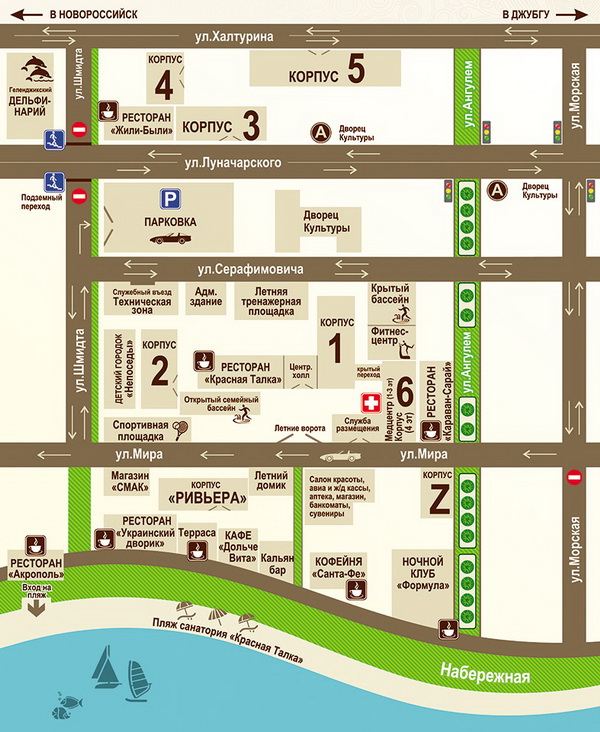 Адрес: Краснодарский край, г. Геленджик, ул.Мира, д.38, Санаторий «Красная Талка».