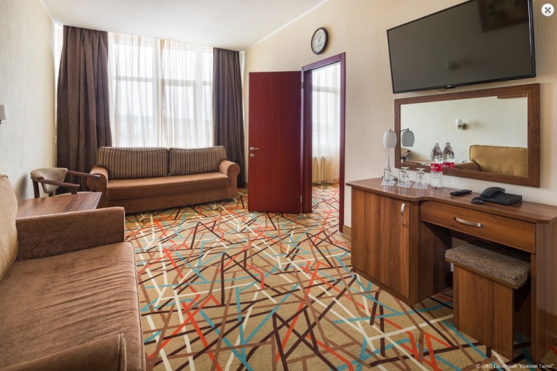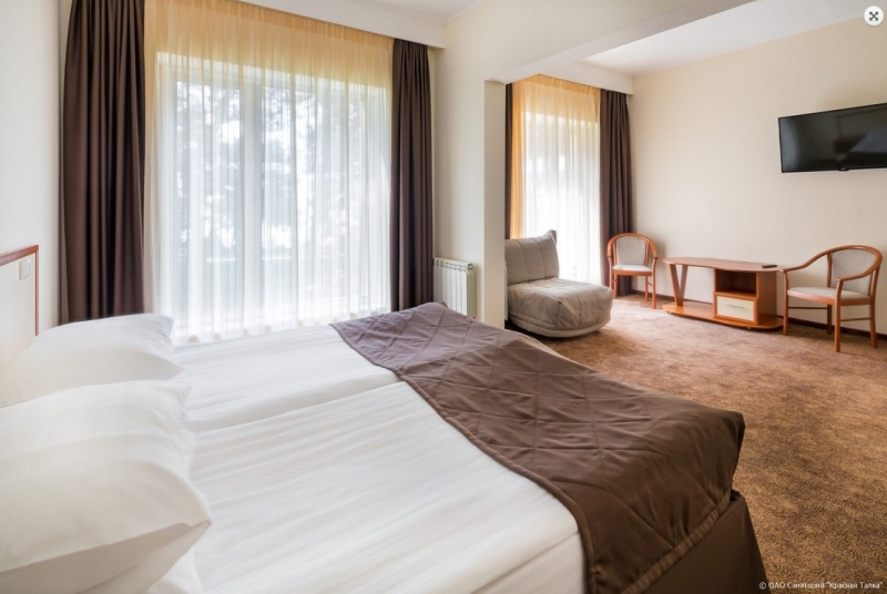 Девятиэтажный корпус является основным на территории. Он соединен теплым переходом с медицинским центром санатория. Питание отдыхающих проходит в ресторане "Красная Талка" на первом этаже корпуса. Там же расположен лобби-бар, где в уютной обстановке можно провести вечер.