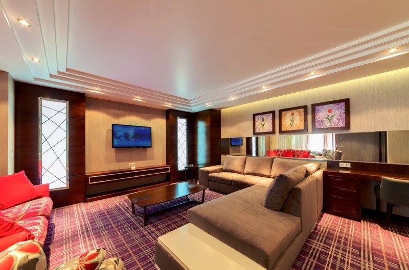 Оснащение номера: спальная зона с большой французской кроватью и гостиная зона, гардероб, ванная комната с набором полотенец, фирменной косметикой, феном, ванна с гидромассажем, биде, а также автономная система кондиционирования, укомплектованный мини-бар (без алкогольных напитков), телевизор, телефон, мини-сейф